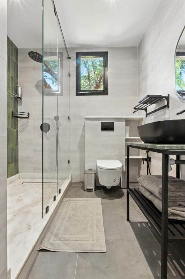 La salle de bain est à votre disposition. Vous y trouverez serviettes et produits de base. Merci de laisser l'espace propre après utilisation pour le confort de tous.